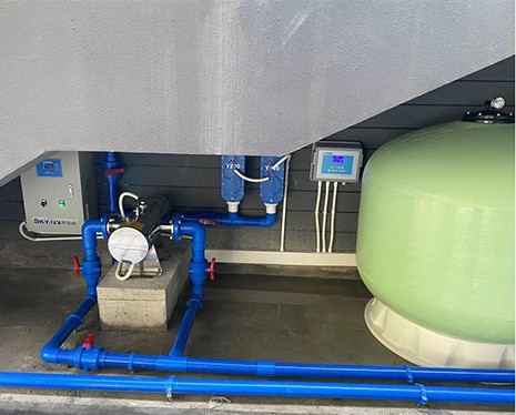 2022年:有泳池(面積:557m3)循環(huán)方式:順流式, 消毒方式:紫外線+氯消毒;主設(shè)備:澳洲瑞凱、ESPA亞士霸 加熱設(shè)備:芬尼克茲